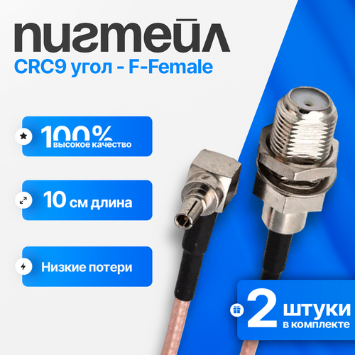 Переходник пигтейл CRC9 - F-female 10 см (2 шт.), для подключения внешней антенны к 3G/4G модемам, мобильным роутерам