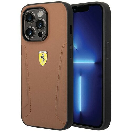 Чехол для iPhone 14 Pro Max Ferrari Leather Stamped sides Hard Camel (FEHCP14XRBUC)