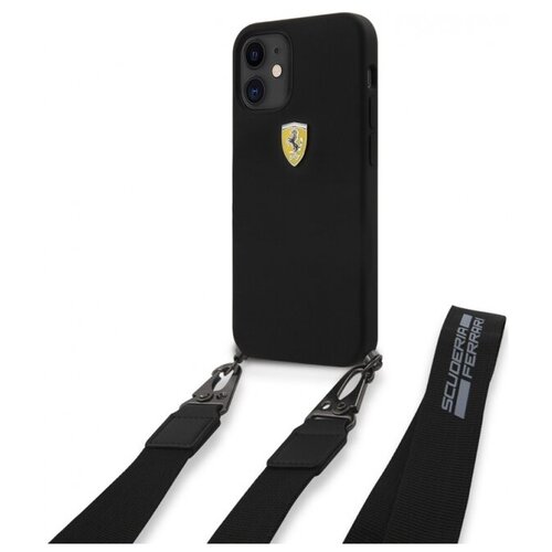 Ferrari для iPhone 12 mini (5.4) чехол On-track Liquid silicone Strap & metal logo Hard Black