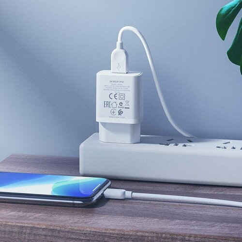 Сетевое зарядное устройство (СЗУ) Borofone BA52A (USB) + кабель Lightning, 2.1 А