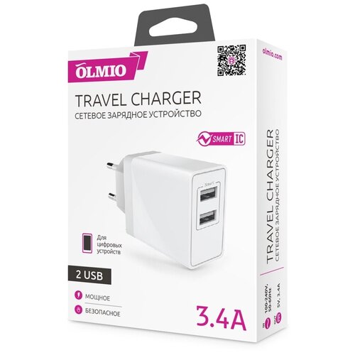 Сетевое Зарядное Устройство для телефона 2USB, 3.4A, Smart IC, OLMIO