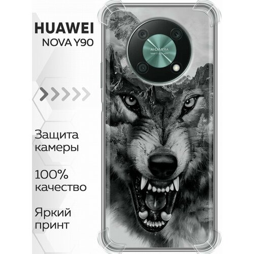 Дизайнерский силиконовый с усиленными углами чехол для Хуавей Нова У90 / Huawei Nova Y90 Волк