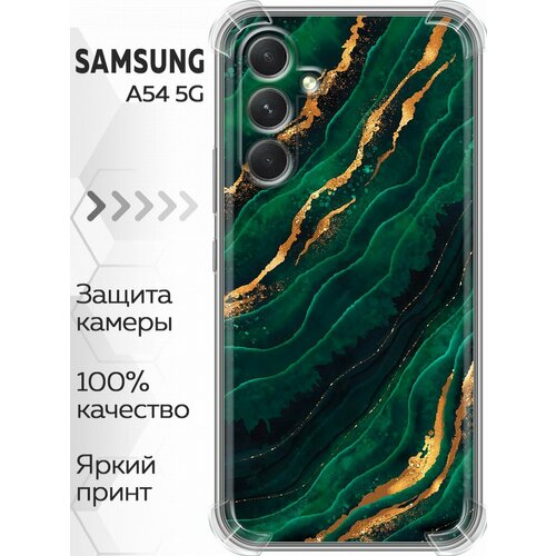 Дизайнерский силиконовый с усиленными углами чехол для Гэлакси А54 5Ж / Samsung Galaxy A54 5G Мрамор зеленое золото