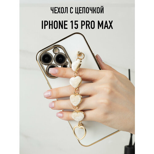 Силиконовый чехол на iPhone 15 Pro Max с цепочкой из сердечек