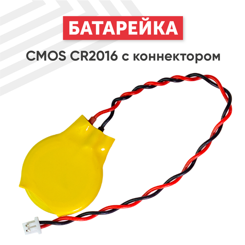 Батарейка (элемент питания, таблетка) CMOS CR2016 / CR 2016, 3В, 75мАч с коннектором, для часов, игрушек, сигнализации, фонарей, брелоков
