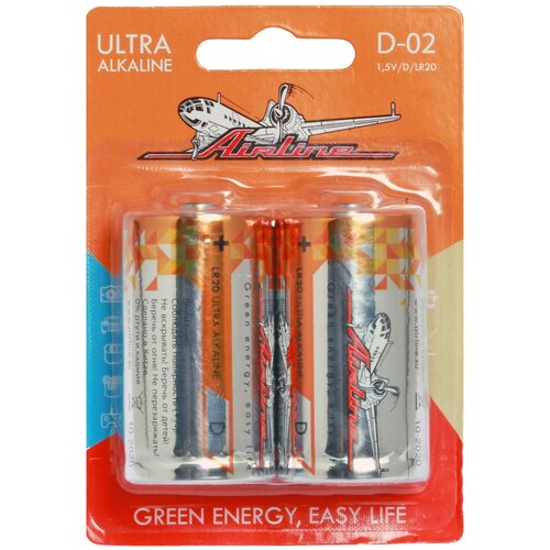 Батарейки Lr20/D Щелочные 2 Шт. Блистер AIRLINE арт. D02