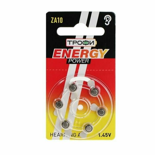 Батарейка цинковая Трофи, ZA10-6BL, для слуховых аппаратов, 1.45В, блистер, 6 шт.
