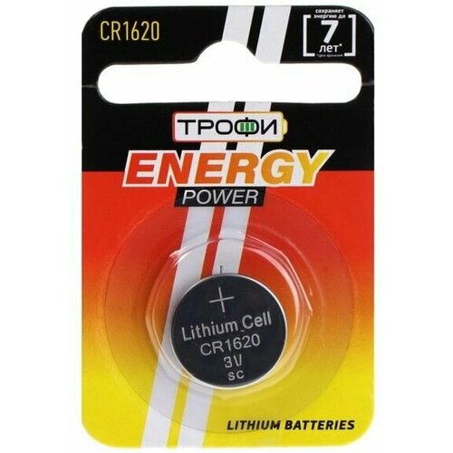 Батарейки литиевая "Трофи", CR1620-1BL, 3В, блистер, 1 шт.