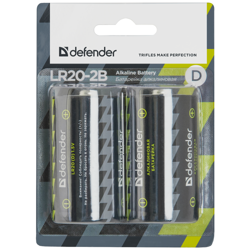 Батарейка Defender алкалиновая D LR20, в упаковке: 2 шт.
