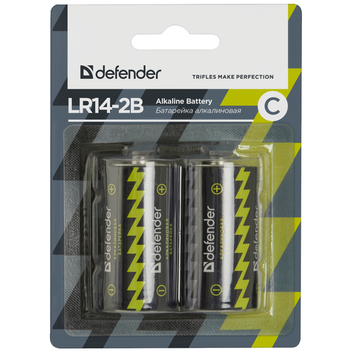 Батарейка Defender алкалиновая C LR14, в упаковке: 2 шт.