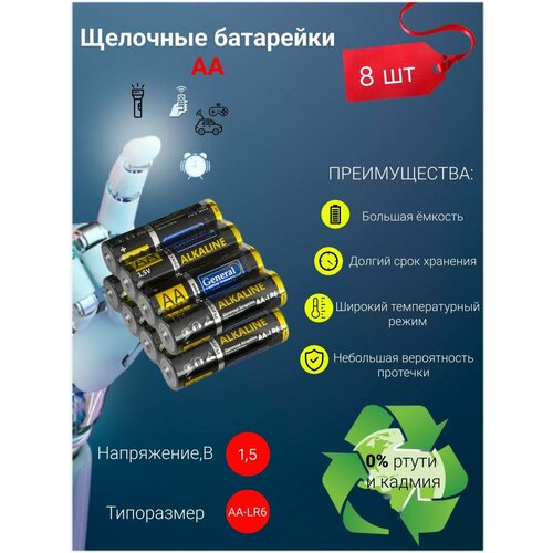 General, Батарейка , Количество 8 шт, Химический тип Щелочной, Форм-фактор LR6 AA