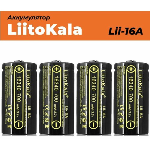 Аккумулятор LiitoKala 16340 (CR123A) Li-ion 3.7В 700mAh незащищенный 4 шт.