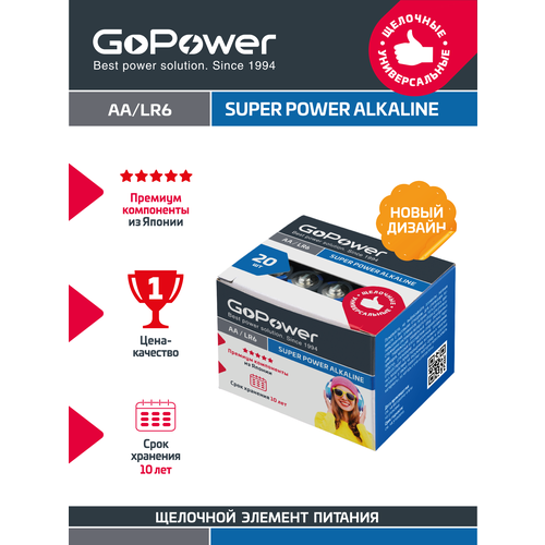 Батарейка GoPower LR6 AA BOX20 Shrink 4 Alkaline 1.5V - 20шт.