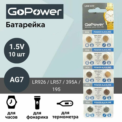 Батарейка GoPower AG7 (LR926, LR57, 395A, 195) Alkaline 1.55V (10 шт)