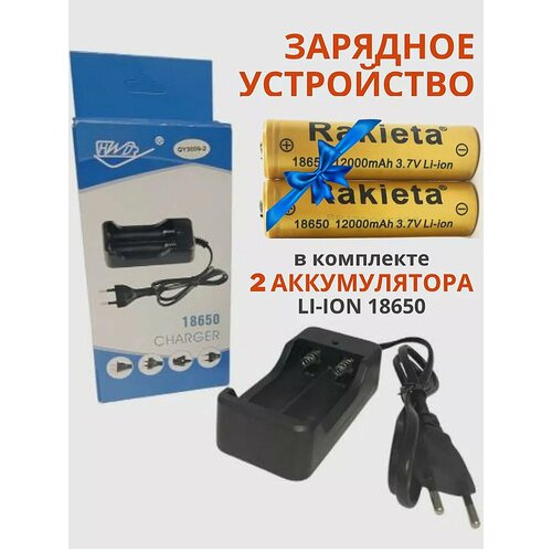 Аккумулятор литий-ионный Rakieta-18650 12000 мАч 3.7V, аккумуляторные батареи с зарядным устройством , комплект из 2-х штук и зарядка
