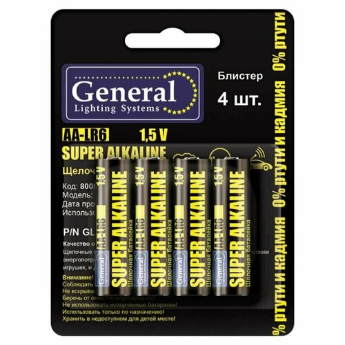 Батарейка АА(LR6), GBAT-LR6, щелочная, 1.5 В, блистер, 4 шт, 800590