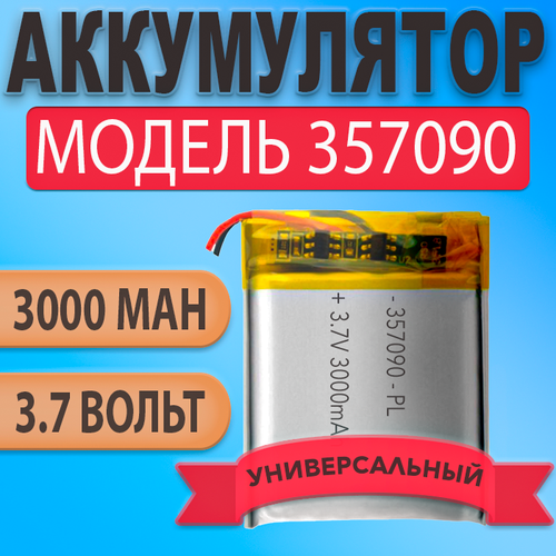 Аккумулятор (батарея) 357090 3000mah 3,7v (90х70х3,5 мм)