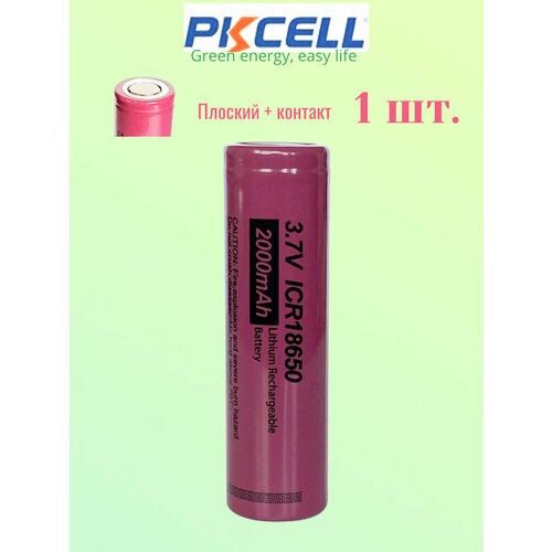 Аккумулятор ICR 18650 - 2000 ma/h 3.7 v плоский (+) контакт - 1шт.