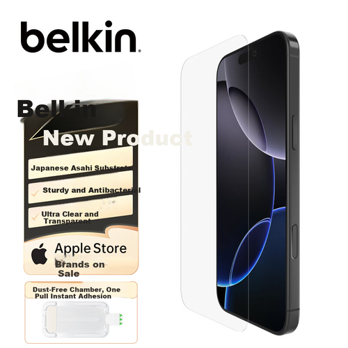 BELKIN Apple 16Pro Tempered Glass Screen Protector for iPhone 16Pro Anti-shock Mobile Phone Film with Asahi Antibacterial Substrate OVA159fq-REV