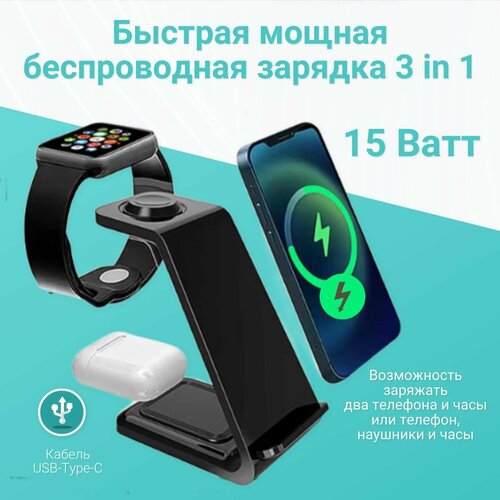 Беспроводная зарядная станция 3 в 1 с поддержкой технологии(Qi) для смартфонов, часов, наушников, iPhone, Apple Watch, Air
