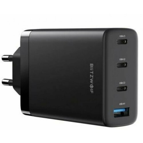 Зарядное устройство для телефона сетевое BlitzWolf BW-S23 GAN 100 Вт, PPS, PD3.0, QC3.0, SCP (3 x Type-C + 1x USB-A) - Черная