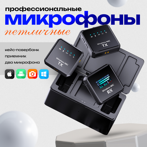 Двойной беспроводной петличный микрофон 2в1 NOIR-audio DOUBLE с разъемами Lightning, Type-C и кейсом для зарядки