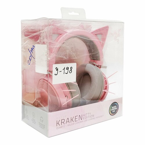 Наушники с ушками, Razer Kraken Kitty Edition Quartz, игровые, розовые, компьютерные. Товар уцененный