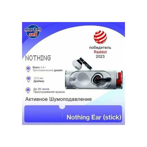 Наушники беспроводные с микрофоном Nothing Ear (stick), Bluetooth, USB Type-C, белый, прозрачный