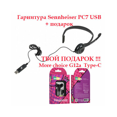Компьютерная гарнитура Sennheiser PC7 USB, + подарок More choice G12a , Type-C