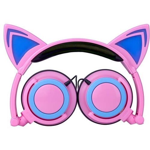 Наушники детские светящиеся кошачьи ушки, складные, розовый / голубой