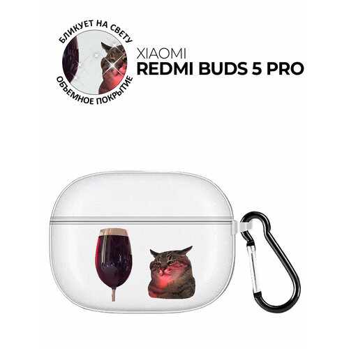 Чехол на Xiaomi Redmi Buds 5 Pro с принтом "Котик и вино" прозрачный