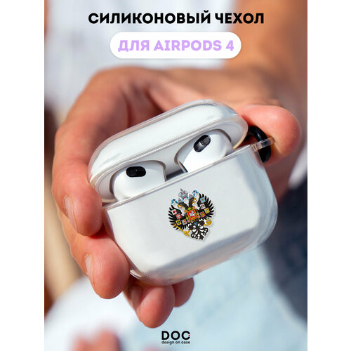 Силиконовый чехол DesignOnCase для беспроводных наушников AirPods 4, с карабином, глянцевый, Герб России