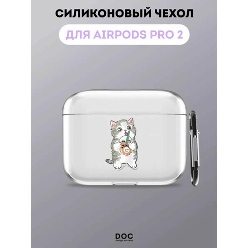 Силиконовый чехол DesignOnCase на AirPods Pro/Pro 2, с принтом Котёнок и bubble tea