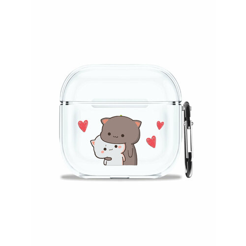 Силиконовый чехол DesignOnCase для беспроводных наушников AirPods 4, с карабином, глянцевый, Коты обнимаются, сердечки
