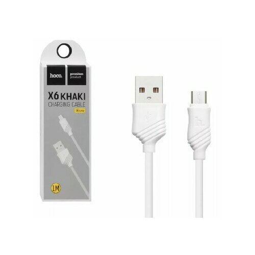Наушники Hoco X6 USB (m)-microUSB (m) 1.0м 2.4A силикон белый