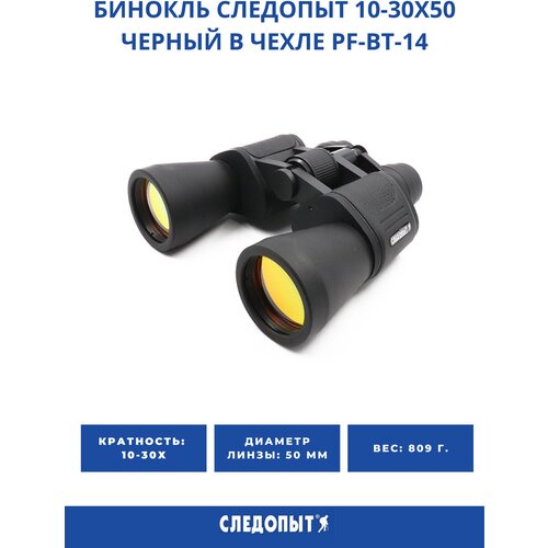 Бинокль Следопыт 10-30х50, чёрный, PF-BT-14, 195 х 190мм, 819гр, в чехле