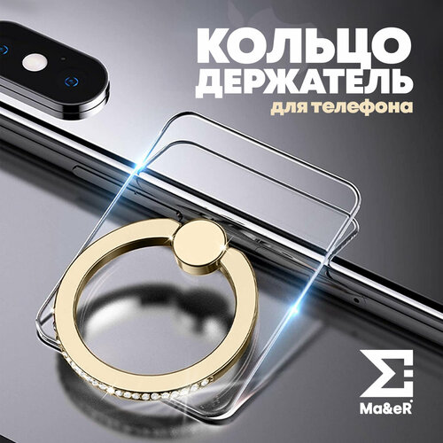 Попсокет для телефона кольцо держатель прозрачный со стразами золото