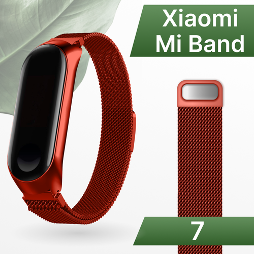 Сменный браслет миланская петля на часы Xiaomi Mi Band 7 / Металлический ремешок для смарт часов Сяоми Ми Бэнд 7 / Красный
