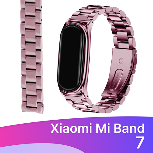 Блочный металлический ремешок на руку для фитнес браслета Xiaomi Mi Band 7 / Сменный стальной ремень на часы Сяоми Ми Бенд 7 (Розовый)