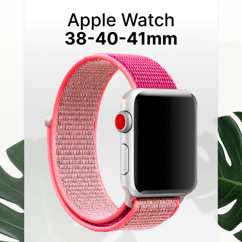 Нейлоновый ремешок для умных часов Apple Watch 38-40-41 mm, 1-9, SE / Тканевый монобраслет на смарт часы Эпл Вотч 1-9, СЕ / 135 мм / Розовый