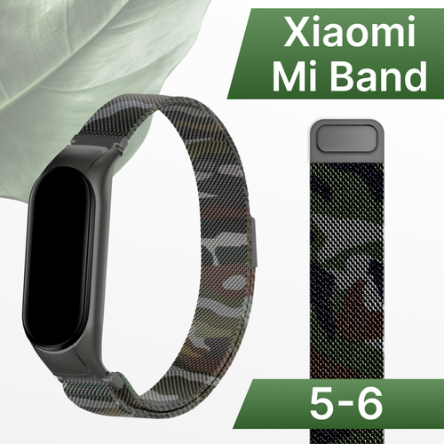 Сменный браслет миланская петля на часы Xiaomi Mi Band 5 и 6 / Металлический ремешок для смарт часов Сяоми Ми Бэнд 5 и 6 / Камуфляжный