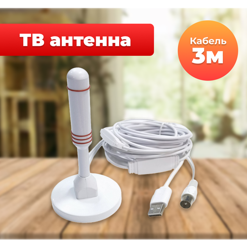 ТВ антенна комнатная с усилителем сигнала на магните (USB,25дБ) белая