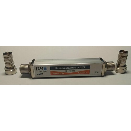 Антенный Усилитель врезной для коаксиального кабеля Zolan LA 22V5, (5 вольт 22Дб) 47-862МГц подарок 2F разъёма ( для DVB-T2, Цифрового ТВ)