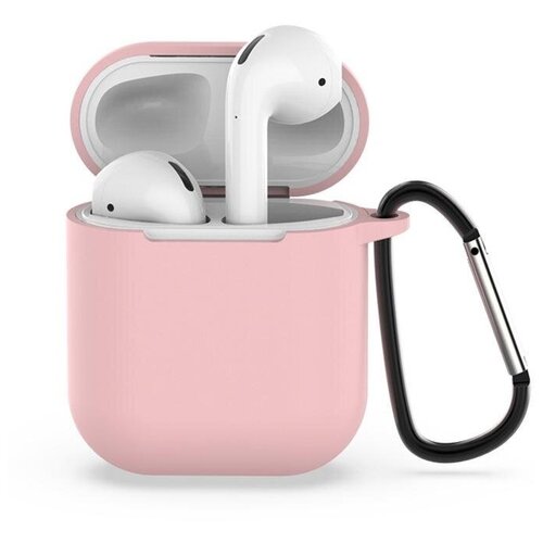Чехол для Apple AirPods 2 и AirPods 1 с карабином / чехол на Аирподс 2 и Аирподс 1 / чехол для наушников пудровый