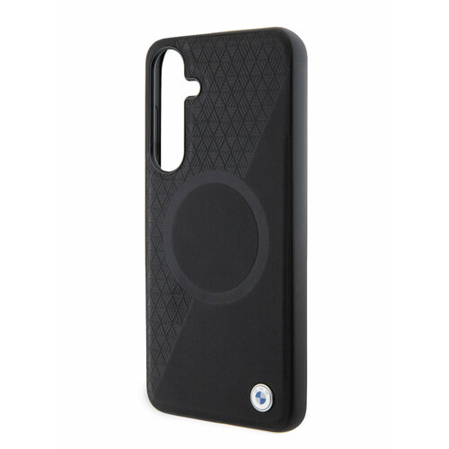 BMW для Galaxy S24 чехол PU Perforated Tricolor stripes Metal logo Hard Black (MagSafe)