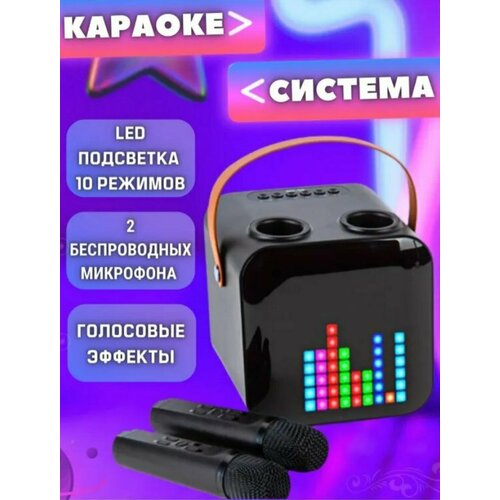 Колонка bluetooth музыкальная / колонка караоке с двумя беспроводными микрофонами MAXI SU Black - красная