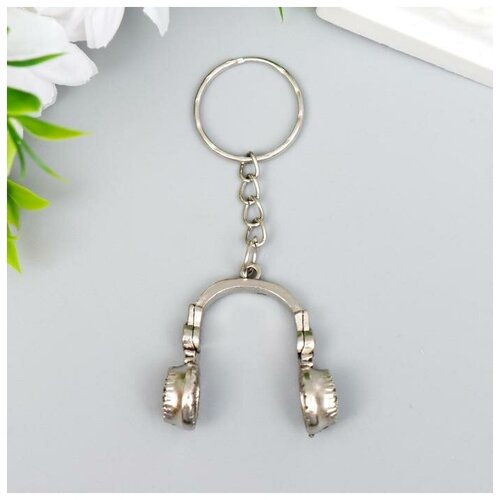 Брелок металл "Наушники" серебро 3,5х3,1 см
