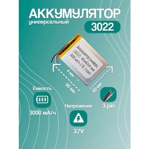 Аккумулятор универсальный 3022 (80*60*4 мм / 3.7V / 3000 mAh)