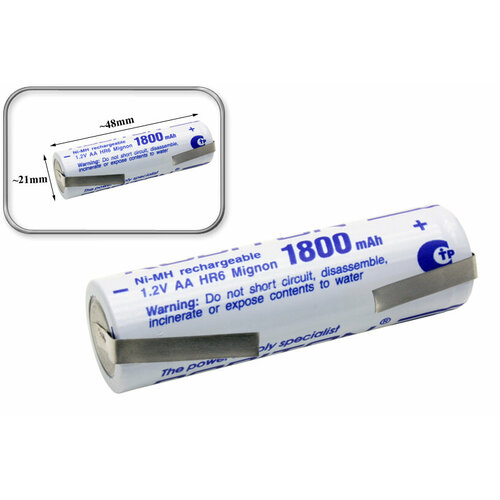 Аккумуляторная батарея Ni-MH типа AA (138-10584, 3731, 3738, 93154-101), 1.2V, станд. емк, с пластинами под пайку, для электробритвы Philips и др.