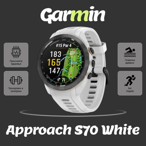 Умные часы Garmin Approach S70 – 42 mm Black Ceramic Bezel with White Silicone Band (010-02746-10)
